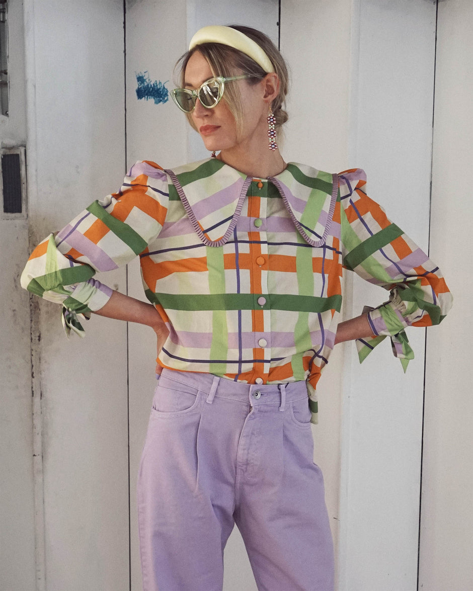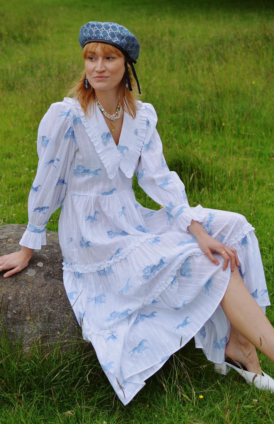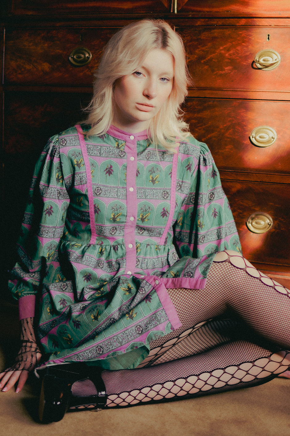 THE SPRING SUMMER ‘18 COLLECTION IS INSPIRED BY THE NOVEL ‘LITTLE WOMEN’ AND LOOKS AT AMERICAN FOLK ART AND ANTIQUITIES FROM THE CIVIL WAR. THE UNIQUE PRINTS ARE CREATED FROM A MIXTURE OF ALL THE SYMBOLS ASSOCIATED WITH THIS PERIOD; NIGHTS AROUND THE FIRE HAND EMBROIDERING AND CROSS-STITCHING HANDMADE DRESSES, WRITING POEMS AND LOVE PUZZLES; WITH LITTLE PRINTED CROSS STITCHES HOLDING EACH PRINT TOGETHER IN THE HEARTFELT SHAKER DRESS.